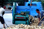 ■牽引拖車(chē)式帶輔助喂料、二次獨(dú)立清選和裝卡車(chē)的免剝皮玉米脫粒機(jī)